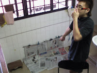 ME : My hand feels wet leh. WAh lau ! Kana again ! CHINA SWEAT!